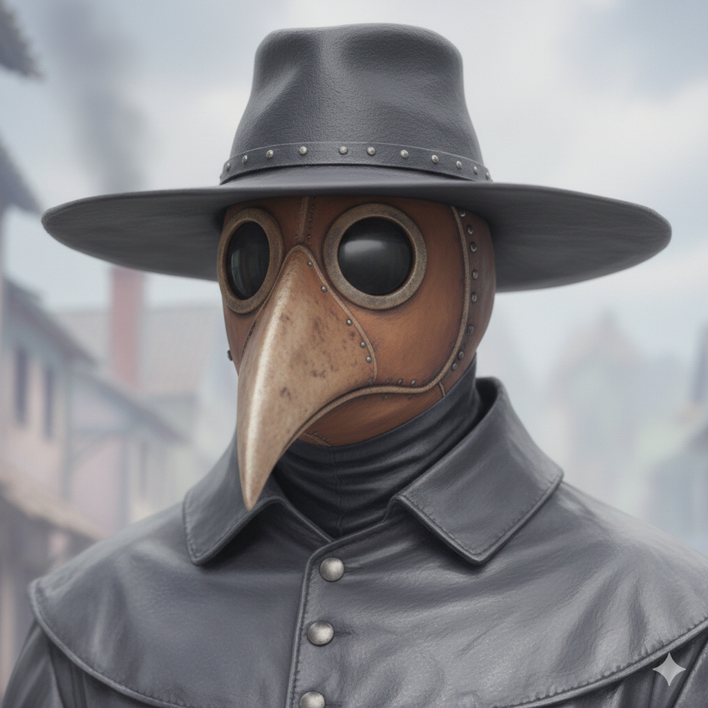 Il avait une cape pare dessus, il marcher la nuit. Vous savez ce fameux masque de médecin de la peste noir ? Et en plus il y avait plusieurs de type de peste comme : Septicémique . Mais aujourd’hui on parle du masque du médecin. Leur masque était rempli d’herbe et de fleurs : Lavande, menthe, rose, œillets, romarin, puis de mélisse. Il mettait des épices et des résines : Cannelle, clous de girofle, myrrhe, camphre, storax (styrax), ambre gris, et du labdanum. Ils rajouter des substances liquide comme le vinaigre, qui était trempés dans des éponges. Ils aussi mélangés des poudres de chair de vipère ou de miel, pour lier les poudres en pâte. Dans leurs masques il avait des parfums pour ne pas respirer le mauvais air appeler le miasme, puis il se protéger en mettent de l’huile sur leur affaire pour se protéger de la bactérie des puces nommée : Yersinia pestis.